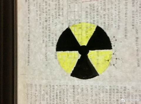 @qiusir:有学僧在物理竞赛小屋的门玻璃上画了一道很像是放射性标志的符...