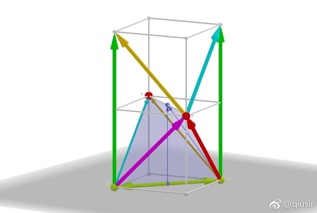 @qiusir:同样是空间向量,浩哥用符号证明简洁(F_C=CA+CB +DC F_D=DB+DA+CD DB=DC+CB DA=DC+CA ),子轩用正六面体里的四面体加向量平移直观,佳禾和泽琛等同学的方法也很棒。
