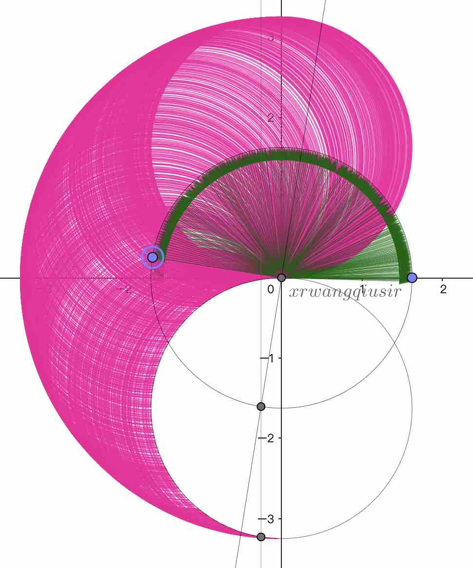 4班王相睿同学对我讲的磁聚焦有个新想法,后经过我的改良,磁场范围是一个太极阴阳的阴阳鱼的样子。学生参与创造了小范例。(第一第二象限的垂直射入第四象限)