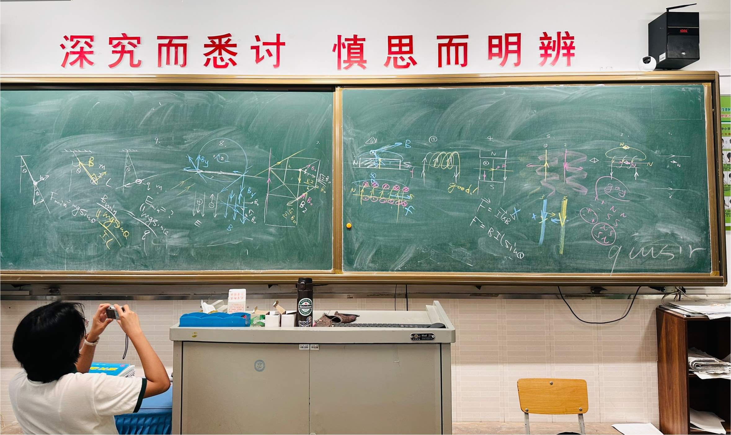 4班王相睿同学对我讲的磁聚焦有个新想法,后经过我的改良,磁场范围是一个太极阴阳的阴阳鱼的样子。学生参与创造了小范例。