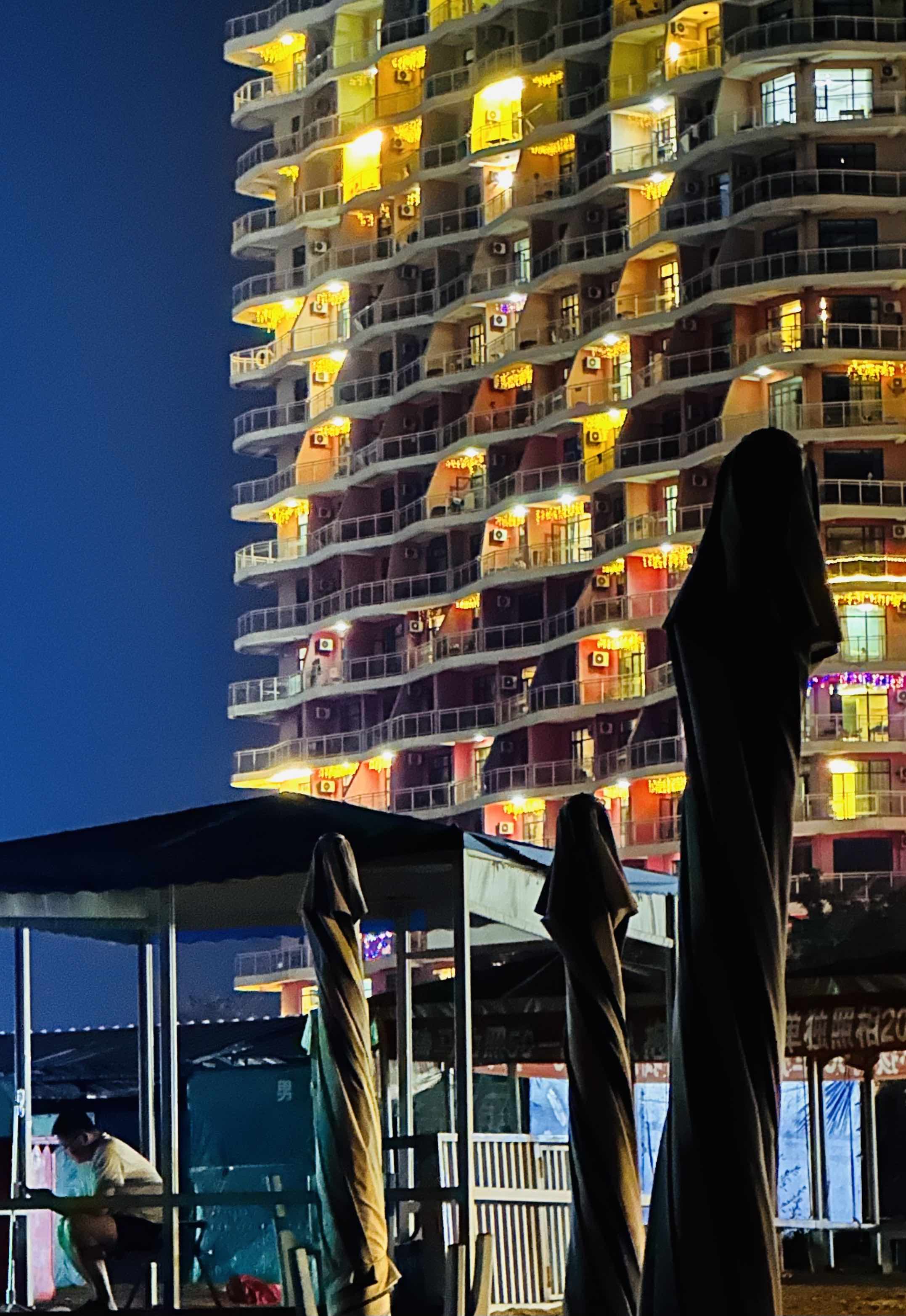 傍晚的海滩有点鬼节的氛围感