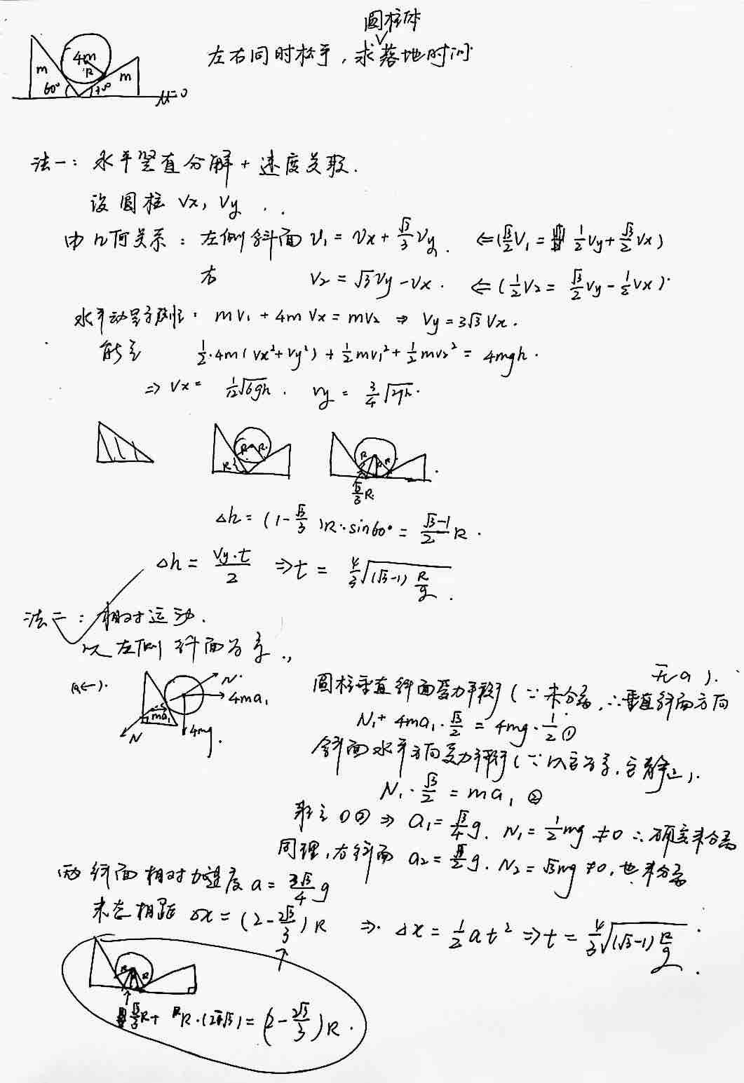 三、光滑圆柱在双斜面上运动(K2304吴尚达)